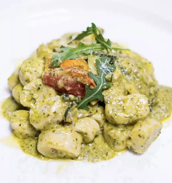Nonna's pistachio pesto, zucchini, cherry tomato, fennel, cream, arugula