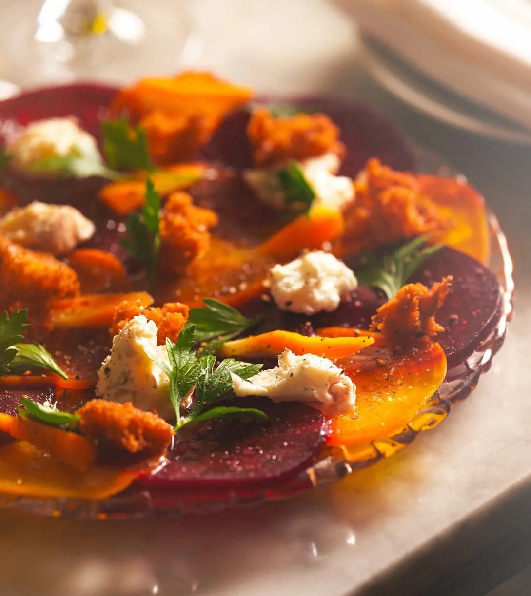 Confit Duck Leg, Pomme Purée, Beets & Whole Grainy Mustard And Orange Sauce