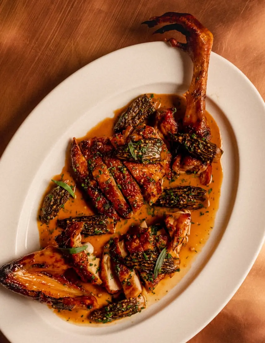 Arguably The Best Game Bird That Doesn't Fly. It Has Its Own Gamey Undertone, And All The Yellow Plum Fat Augments The Flavor Of Our Iron Seared Thiessen Pheasant. For Its Tough Thigh From All The Running, We Cleave, Tenderize And Pack It Inside The Skin To Create A Perfect Parcel Of Juicy Goodness For You. Preserved Morel Provides The Perfect Ground For It And The Rum Grapes And Kumquat Adds The Final Zing.