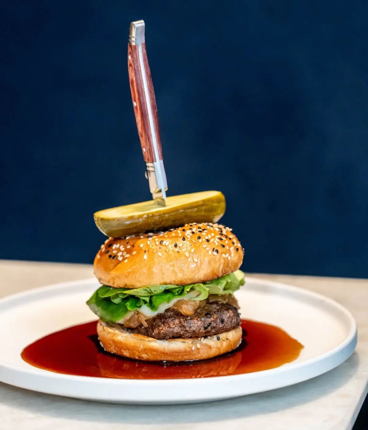 Sesame Brioche, Caramelized Onions, Taleggio Dijon Aioli, Sea Salted Fries
