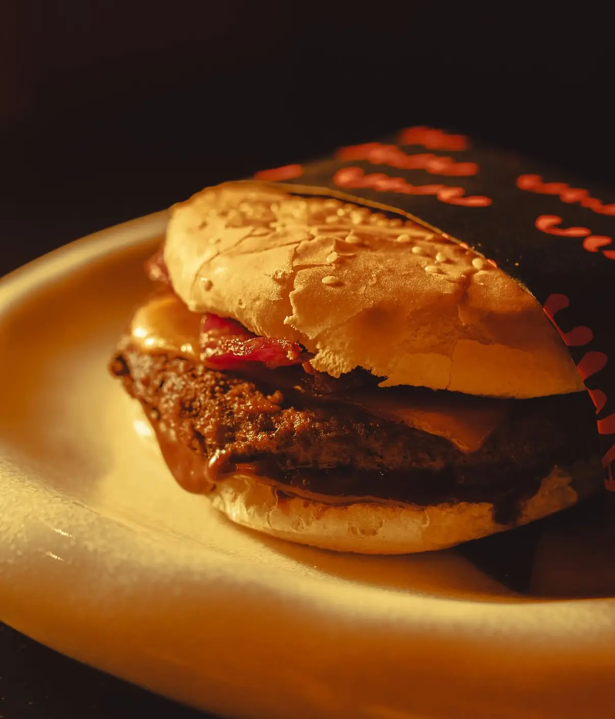 Our Signature Burger Topped With Creamy Mac’n’cheez, Lettuce, Tomato, Pickled Jalapeños, Chipotle Mayo & Crispy Onion Strings