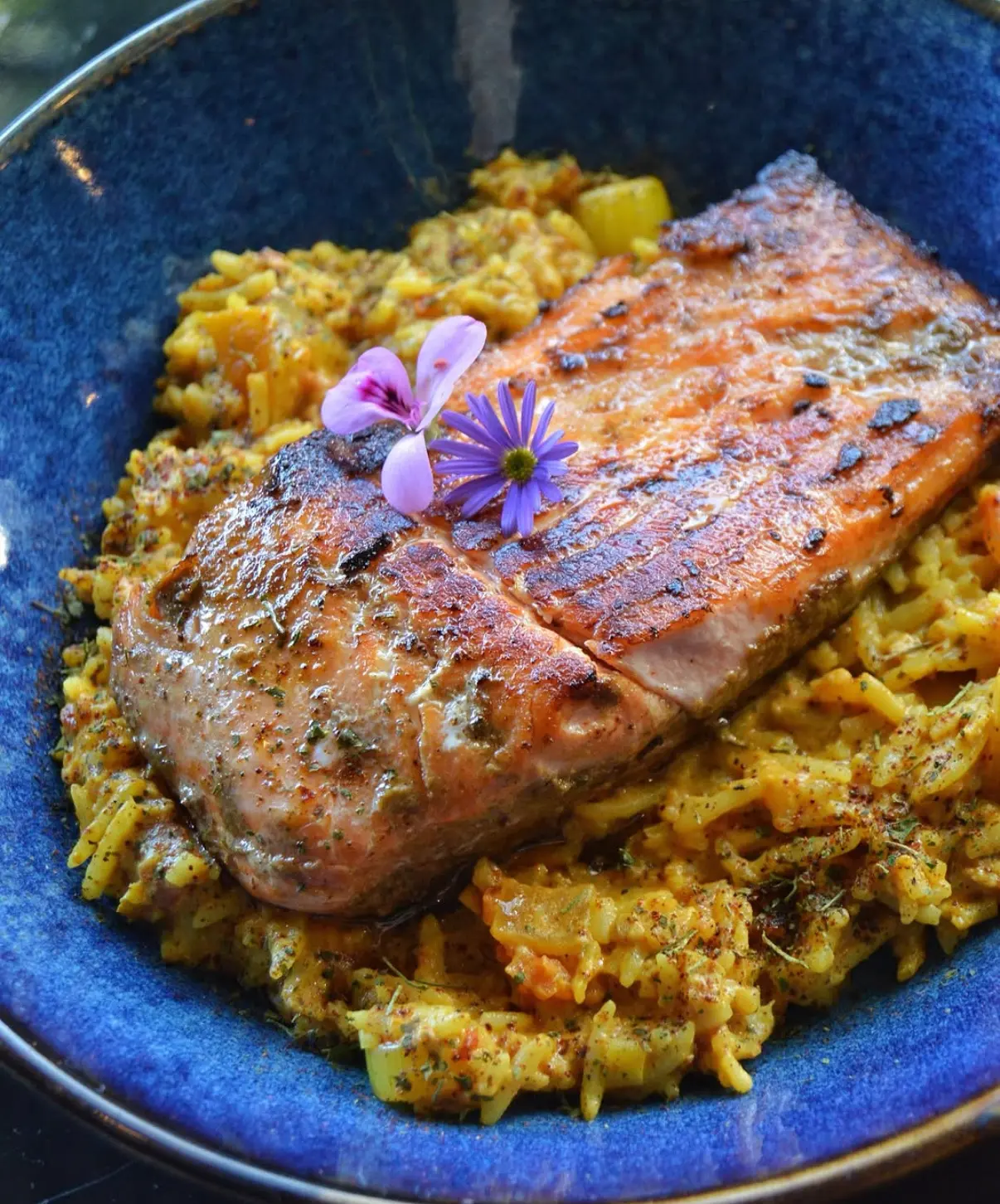 Marinated in Spiced Tamarind on Creamy Basmati “Risotto”